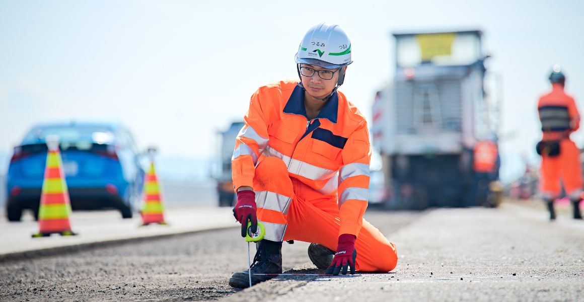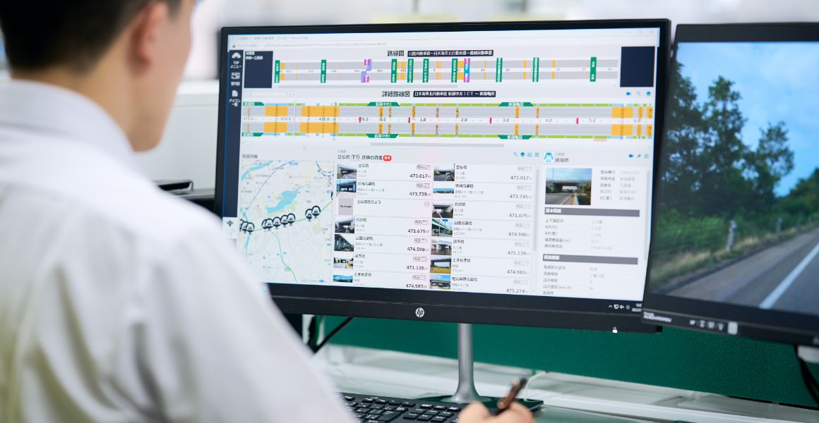 橋梁、トンネルなどの道路構造物や、照明などの道路付属設備を対象に、最新技術や熟練の点検技術を組み合わせて健全性を確認。点検結果を基に、補修計画を立案し、迅速かつ適切な対応を行うことで、地域社会と物流を支える重要な役割を果たしています。