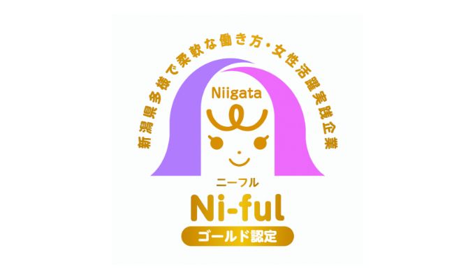 新潟県より、多様で柔軟な働き方の推進や仕事と家庭・その他の活動の両立支援、女性の登用・育成などに積極的に取り組む企業として、「Ni-ful(ニーフル)ゴールド企業」認定を受ける。