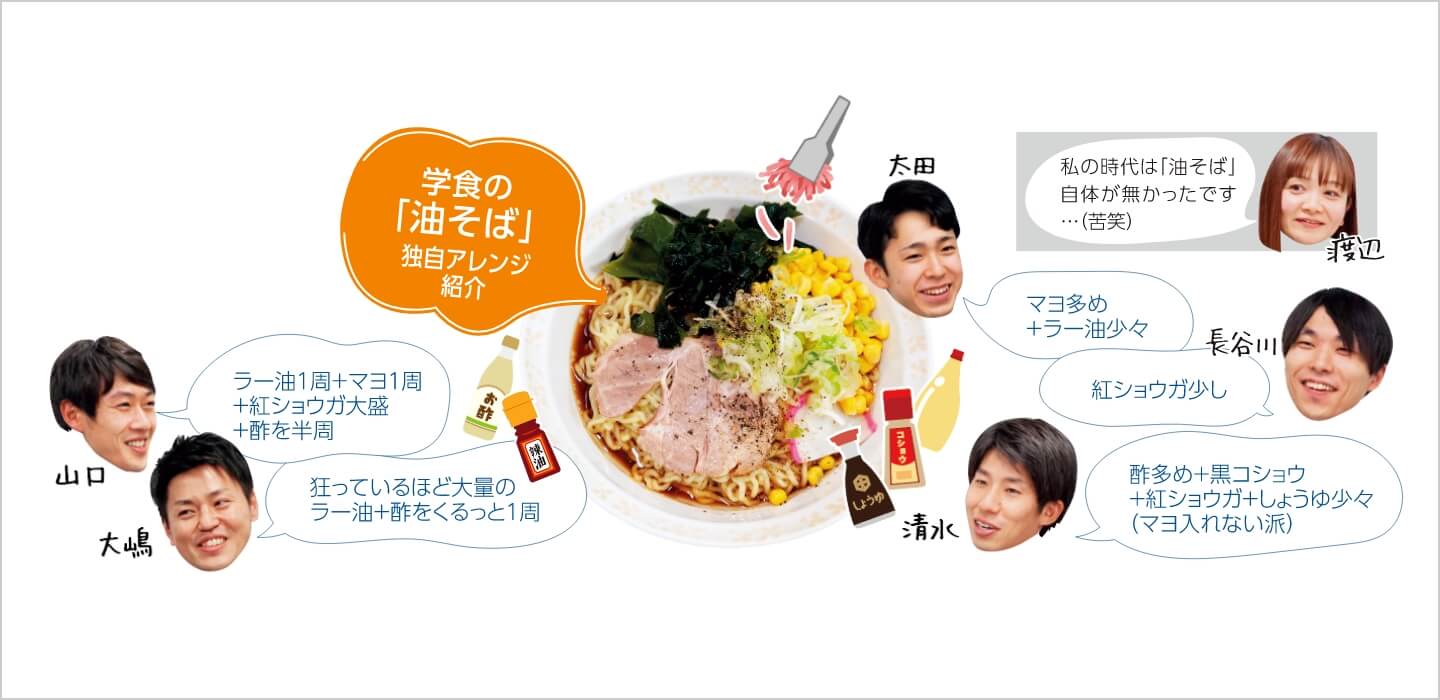 清水:私がご説明しましょう。学食のメニューの1つで、僕らにとってはソウルフードです。みんな独自のアレンジがあって、個性が出て面白いんですよね。
