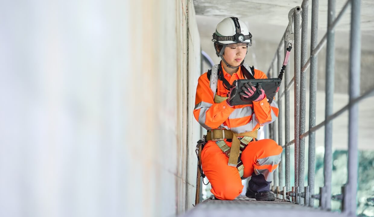 建設系の学校でもコンクリートの打音検査を学んだ人はいないでしょうから、入社後にみんながイチからスタートします。ですから、「学んでいこう」という気持ちが大事だと思います。現場で学び、経験を積みながら高速道路点検士などの様々な資格取得に挑戦し、自分のできる領域を広げていくことで仕事のやりがいに繋がっていくと考えています。個人的には、橋梁やトンネルを点検するときに高所点検用の大型車両や特殊車両に乗るのも仕事の魅力のひとつです。