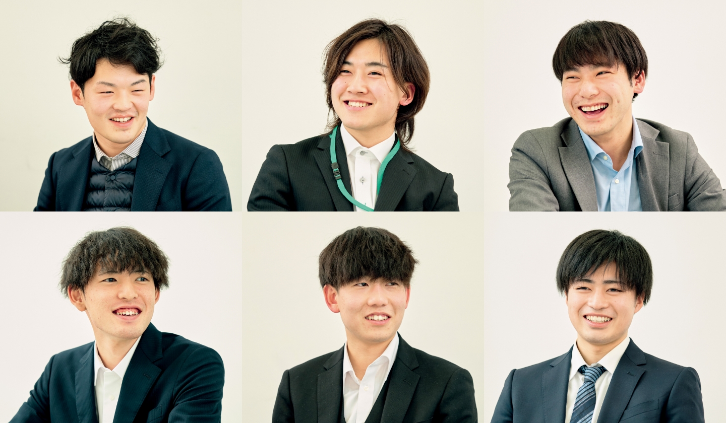 今回は上越総合技術高校、略して「上総」出身の6名にお集まりいただきました。現在当社では、17名の卒業生(※1)が活躍しています。お集まりいただいた6名のうち、なんと4名がバスケ部出身。しかし、先輩後輩の上下関係も見られず、非常に和やかな会となりました。