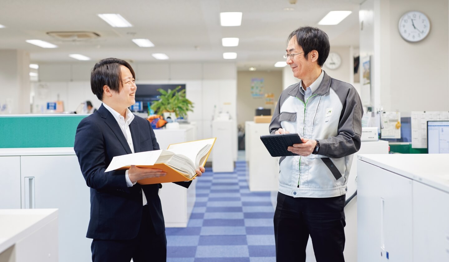 町田:えっ、そうなんですか。うれしいな…(笑)。小泉さんは話しやすくて、何でも話してしまいます。社歴も長く、NEXCOとの協議や契約に関してもよくご存じなので、頼れる先輩です。常に落ち着いてらっしゃって、打ち合わせに付いて行っては、その立ち振る舞いなどを含めて、学ばせていただいています。自分、車が好きなんですけど、実は小泉さんもお好きなんですよ。ね?