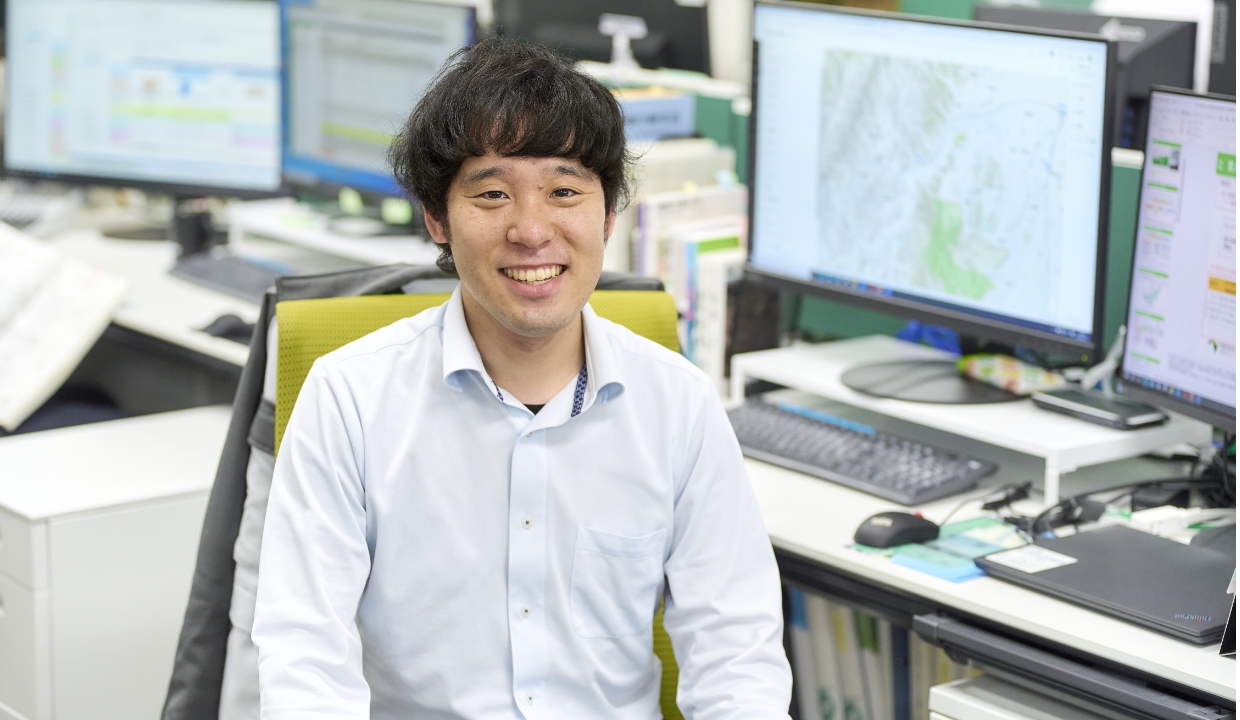 鴻江 雄太さん:西山は工事に携わる仕事をしていたので、私とは違った視点で物事を見ることができるのではと期待しています。調査系の部署は久しぶりだと思いますが、無理をせず、楽しく、一緒にがんばっていきましょう!