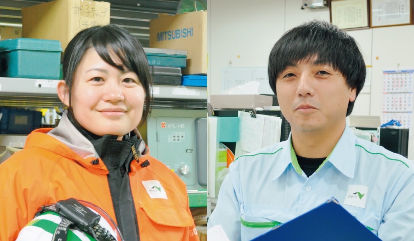 小林:冨樫さんは毎日現場に出て、特殊検査の最前線でバリバリで働いていますが、私はどちらかというと裏方として、事務所での資料・報告書作成に勤しんでいます。具体的には高速道路の施設設備の法定検査等の立会業務や外注・資材発注業務、出来高管理、他に毎月保全課の業務状況をまとめた「業務状況報告書」の作成や、次年度の「補修計画資料」などの作成をしています。またこれとは別に、サービスエリア・パーキングエリアの電気設備保守業務の保守責任者をしています。