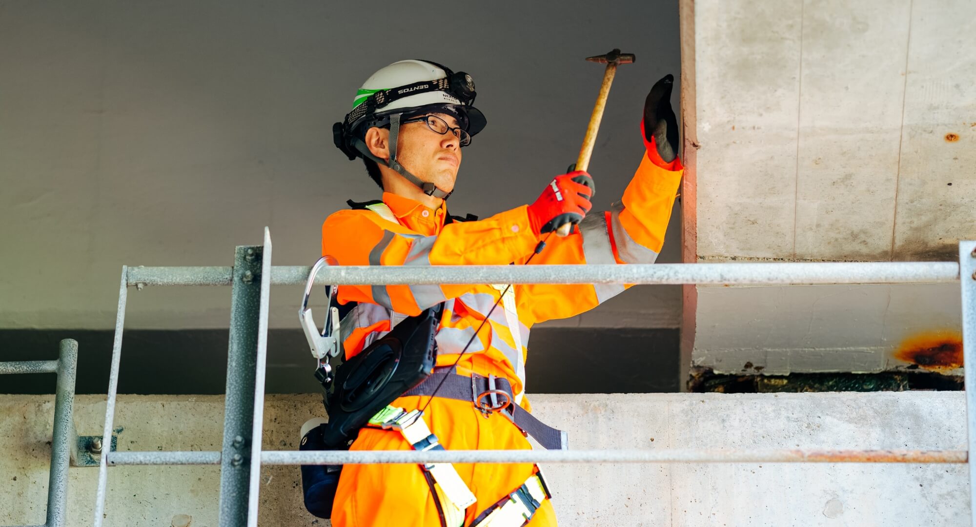 高速道路上のトンネルや橋梁、舗装、のり面などの構造物を点検しています。現場での点検結果をもとに、構造物の健全性を診断し、調査や補修の必要性とその方法をNEXCO東日本へ提案する業務を担当しています。